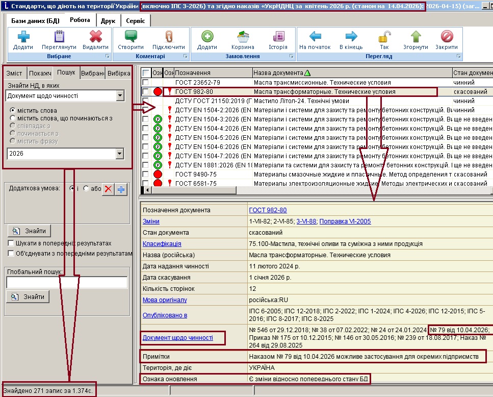 Увага! Тексти стандартів не входять до складу бази даних.