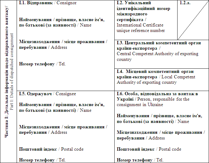 "1) ôîðìó ì³æíàðîäíîãî ñåðòèô³êàòà äëÿ ââåçåííÿ (ïåðåñèëàííÿ) íà ìèòíó