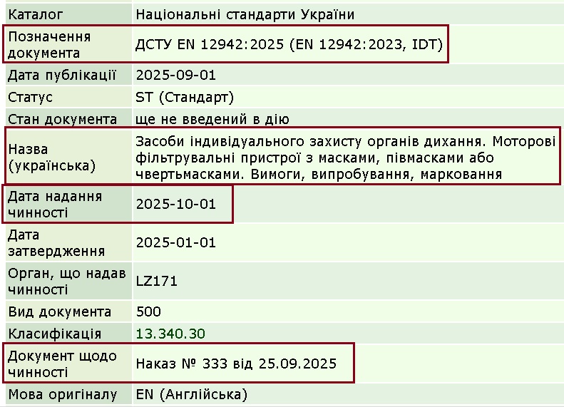 04.08.2025 - Технічне регулювання  |  На офіційном сайті ДП «УкрНДНЦ» розміщено Повідомлення про розроблення проектів національних стандартів: ДСТУ EN ISO 23062:20__ (EN ISO 23062:2022, IDT; ISO 23062:2022, IDT) «Машини ливарні. Вимоги безпеки до формувальних і стрижньових машин та пов’язаного устатковання»; ДСТУ EN 61347-2-7:2014/Зміна №1 (EN 61347-2-7:2012/A1:2019, IDT; IEC 61347-2-7:2011/A1:2017, IDT); Зміна № 2 (EN 61347-2-7:2012/A2:2022, IDT; IEC 61347-2-7/AMD2:2021, IDT) «Пристрої керування лампами. Частина 2-7. Додаткові вимоги до електронних пристроїв керування лампами для аварійного освітленням з живленням від акамулятора (автономних)»; ДСТУ EN IEC 60598-1:202_ (EN IEC 60598-1:2021; A11:2022, IDT; IEC 60598-1:2020, IDT) «Світильники. Частина 1. Загальні вимоги та випробування.»; ДСТУ EN IEC 60598-2-22:202_ (EN IEC 60598-2-22:2022, IDT; IEC 60598-2-22:2021, IDT) «Світильники. Частина 2-22. Додаткові вимоги. Світильники для аварійного освітлення»; ДСТУ EN IEC 60598-2-23:202_ (EN IEC 60598-2-23:2021, IDT; IEC 60598-2-23:2020, IDT) «Світильники. Частина 2-23. Додаткові вимоги. Системи освітлення наднизької напруги для джерел світла ELV»; ДСТУ EN 12545:2022 (EN 12545:2000+A1:2009, IDT) «Машини для виробництва взуття, шкіри та шкіряних виробів. Код перевірки шуму. Загальні вимоги»; ДСТУ «Пoяcи пожежні рятувальні. Загальні вимоги та методи випробувань»; Зміна №1 ДСТУ 8934:2019 «Труби безшовні гарячедеформовані з корозійнотривких сталей і сплавів. Технічні умови»; Зміна №1 ДСТУ 8937:2019 «Труби безшовні холодно- та теплодеформовані з корозійнотривких сталей і сплавів. Технічні умови».  Докладніше...   |